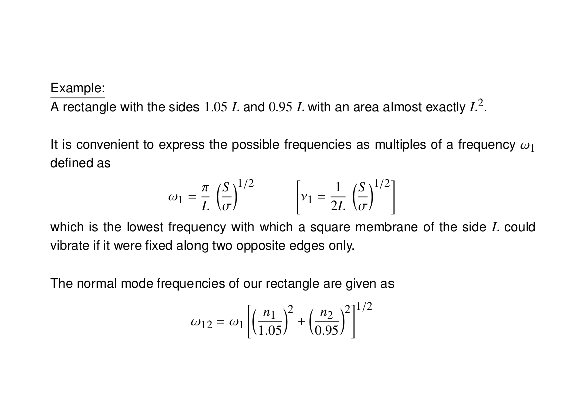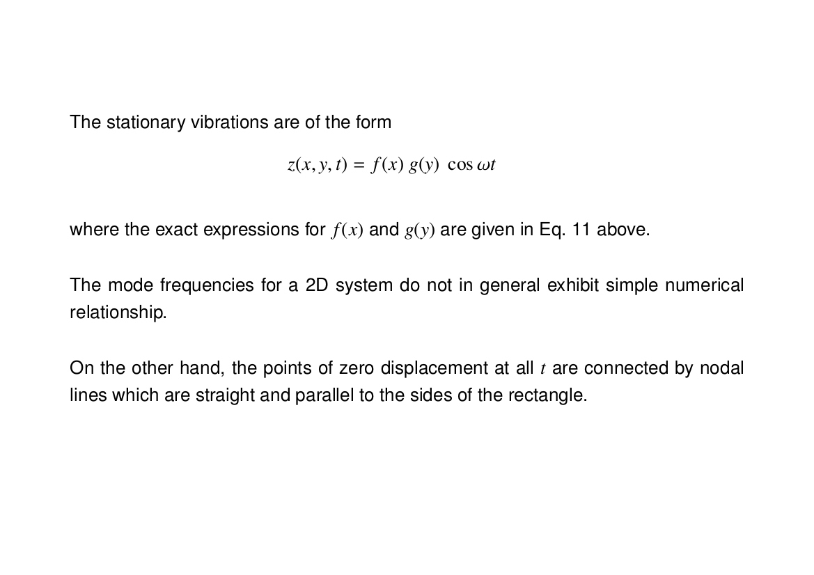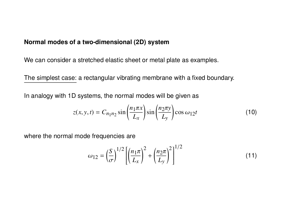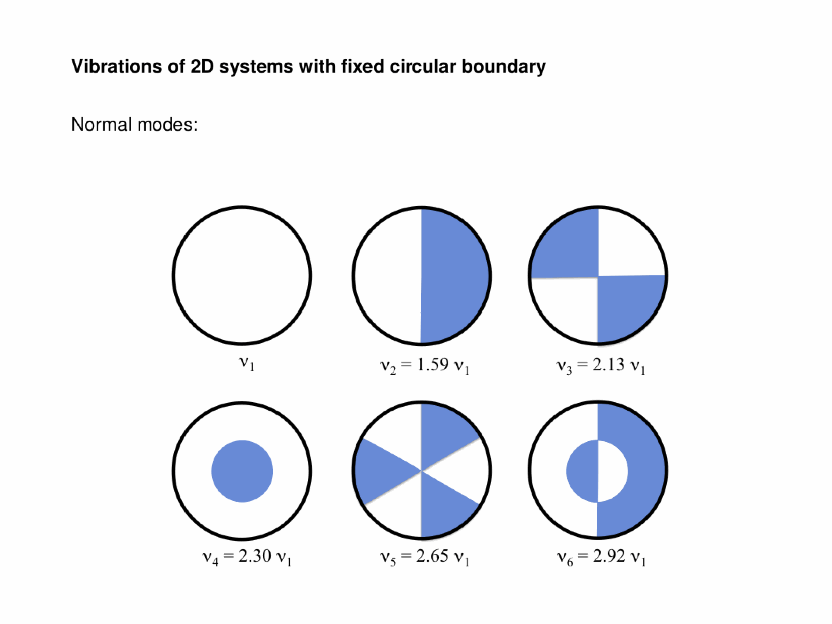 Normal modes exist for multidimensional systems as well. Below is an animation of a general vibration of a membrane stretched across a rectangular frame where one side is 1.5 times longer than the other: