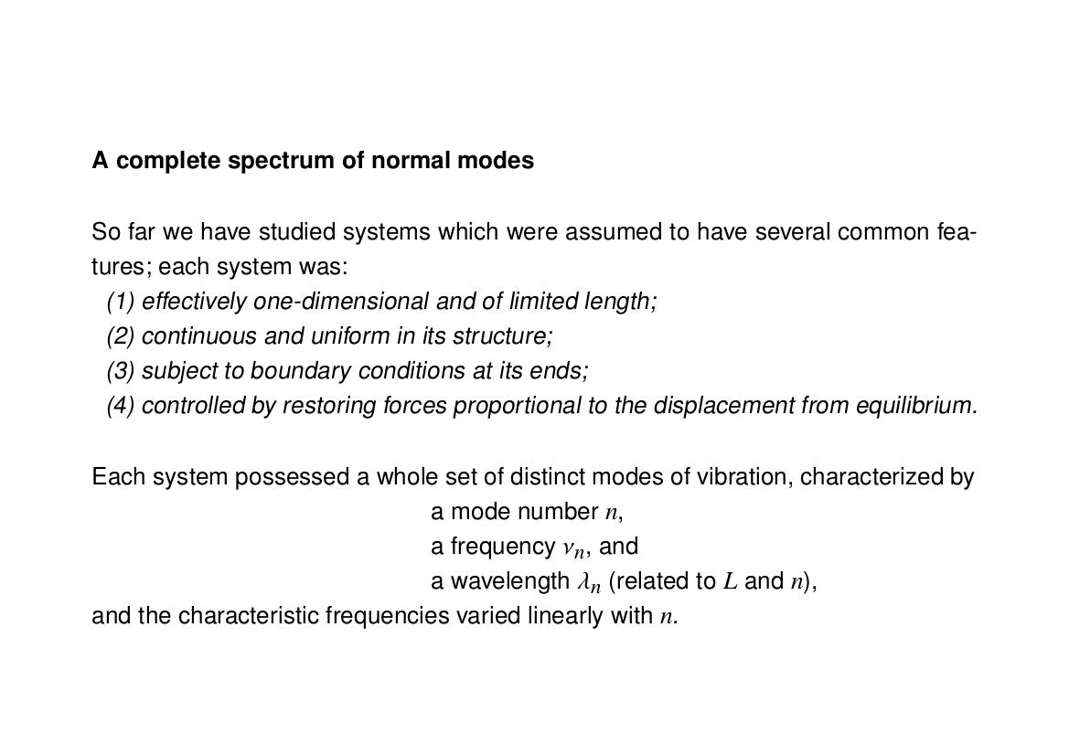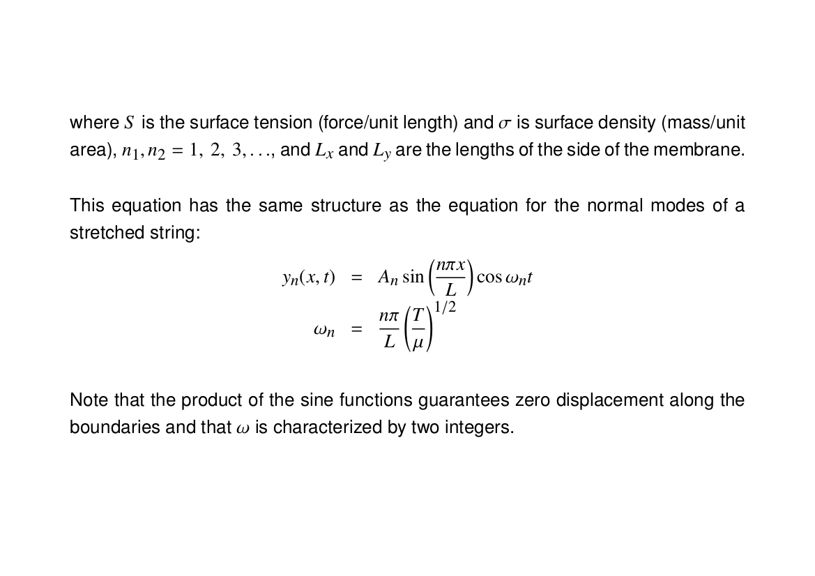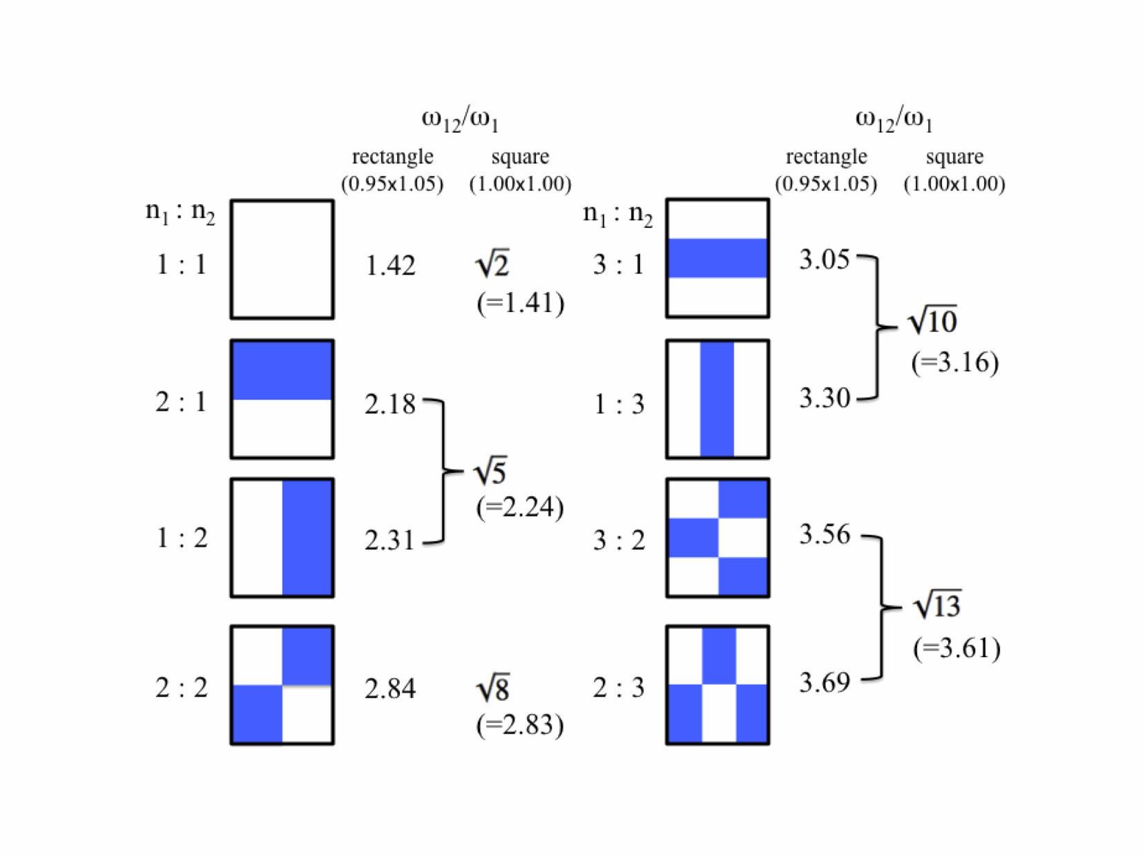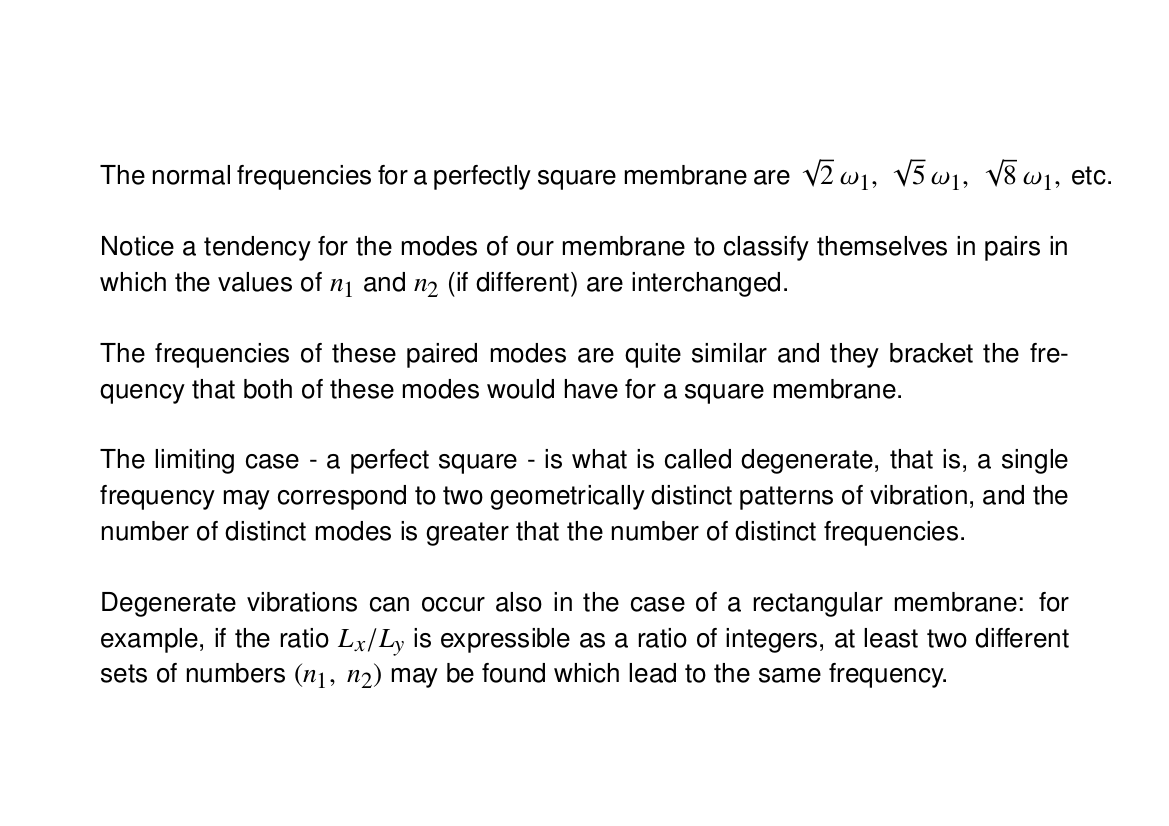 Normal modes exist for multidimensional systems as well. Below is an animation of a general vibration of a membrane stretched across a rectangular frame where one side is 1.5 times longer than the other: